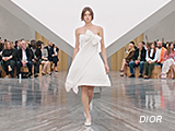 一方、「DIOR (ディオール)」は、Jonathan Anderson (ジョナサン・アンダーソン)による初のウィメンズコレクションを披露した。ブランドのヘリテージを読み解きながら、ジョナサンらしい大胆さと遊び心とを加えたスタイルを構築した。彫刻的なシルエットの"バー"ジャケットはデニムのミニスカートを合わせて、モダンにアップデート。シャープなシルエットが特徴のデイドレス"シガール"は透け感のあるレースをあしらい、センシャルに落とし込んだ。胸元やウエストラインにリボンモチーフを飾った愛らしいデザインもポイントだ。